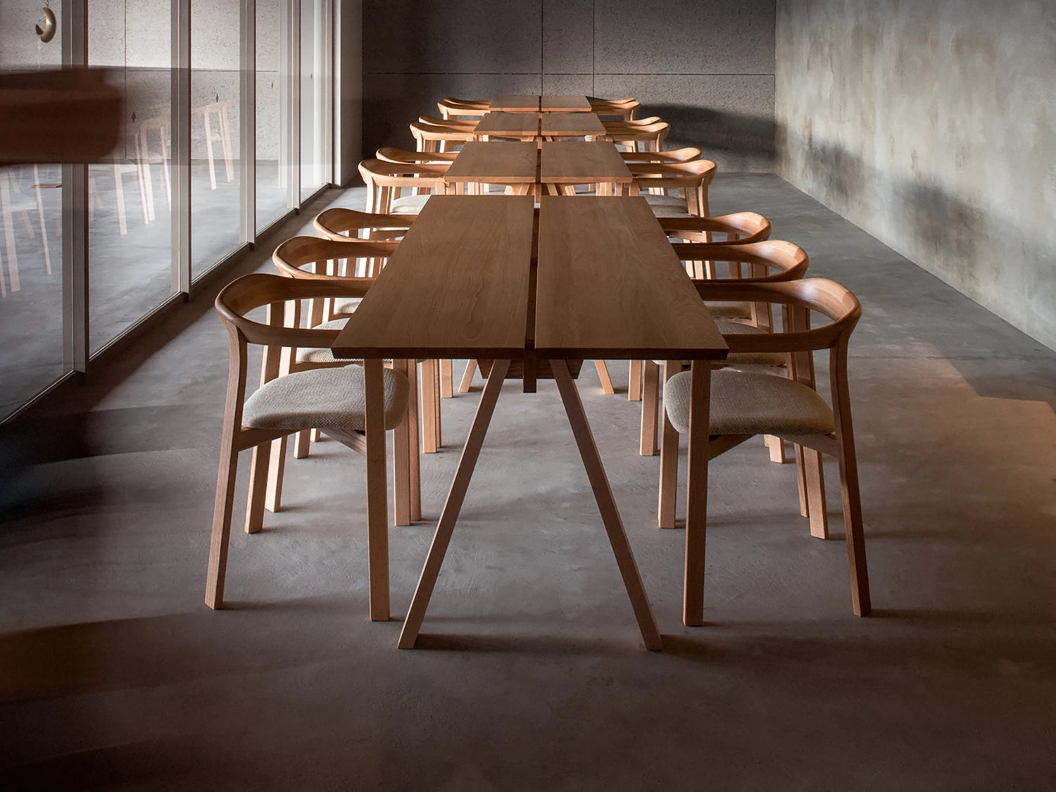 Ariake is a furniture brand founded by Legnatec and Hirata Chair, two factories from the furniture producing town of Morodomi in Saga prefecture, Japan. Named after the Ariake Sea in Southern Japan, Ariake means daybreak in Japanese. It symbolizes a new chapter for the two factories as they embark on a collaboration with international designers for the global market. It is our belief that strong working relationships are the foundation of good products. Furniture is made for social situations where people live, work and eat together. The creation of the Ariake brand and furniture designs were done over two intensive workshops in Morodomi where furniture designers, art director, photographer and craftsmen did the same – we lived, worked and ate together over. Despite language barriers, the designers and craftsmen generated a collective energy and mutual trust that helped define the soul of the brand. This resulted in a collection of furniture that utilizes the best of hand and machine, inspired by the spirituality of Japanese culture and urban living contexts. We present to you a 30-piece collection made from oak, ash, hinoki, cedar, leather, paper cord, cotton canvas, upholstery and unique finishes such as sumi and indigo dye. Each piece is crafted in Morodomi, with furniture designs by Anderssen & Voll, Gabriel Tan, Keiji Ashizawa, Norm Architects, Note Design Studio, Shin Azumi, Staffan Holm, Zoe Mowat, Studio MK27, Photography Sebastian Stadler, Art Direction by AnnerPerrin.
