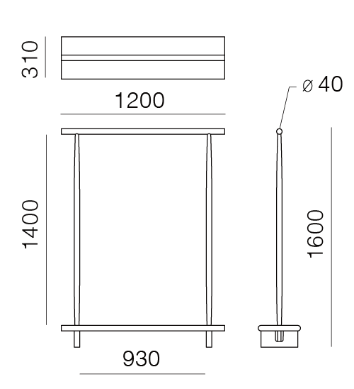 W 1200 x D 310 x H 1600 mm