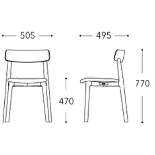 W 505 x D 495 x H 770 / Upholstered Seat SH 470 Wooden Seat SH 450 mm