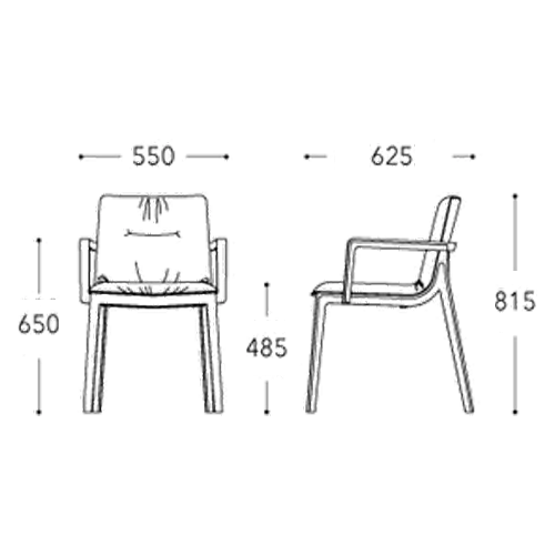 W 550 x D 625 x H 815 / SH 485 AH 650 mm
