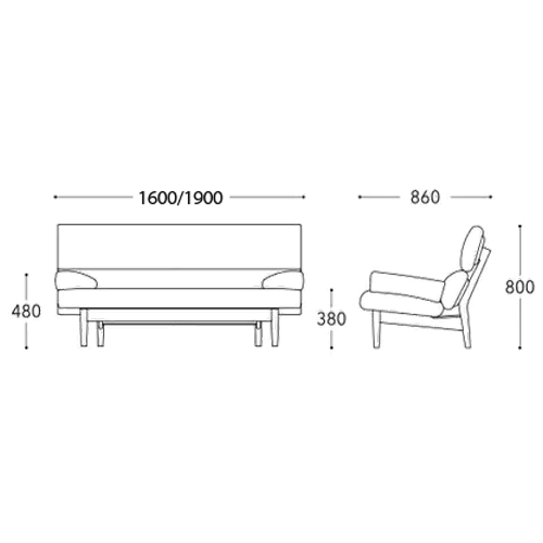 W 1600/1900 x D 860 x H 800 / SH 380 AH 480 mm