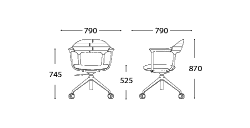 W 790 x D 790 x H 785-870 / SH 425-525 AH 655-745