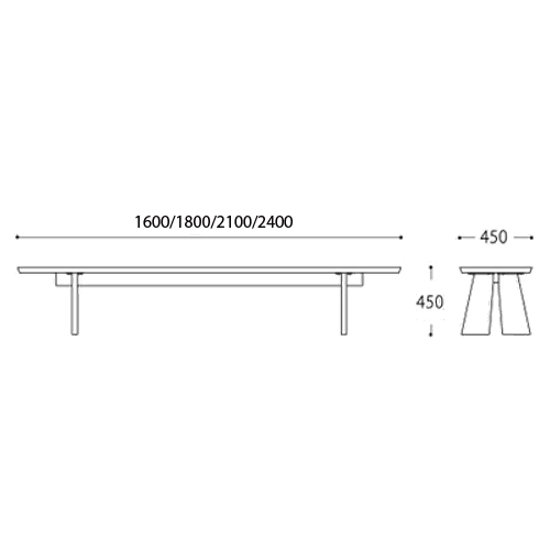 W 1600/1800/2100/2400 x D 450 x H 450 mm