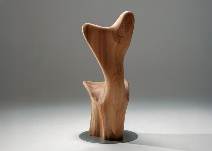 The wide and thick back, framed by elaborately processed solid wood – the point the designer likes best – gives an impression of elegance. the chair was named from the beautiful shape of its frame (figure of eight).