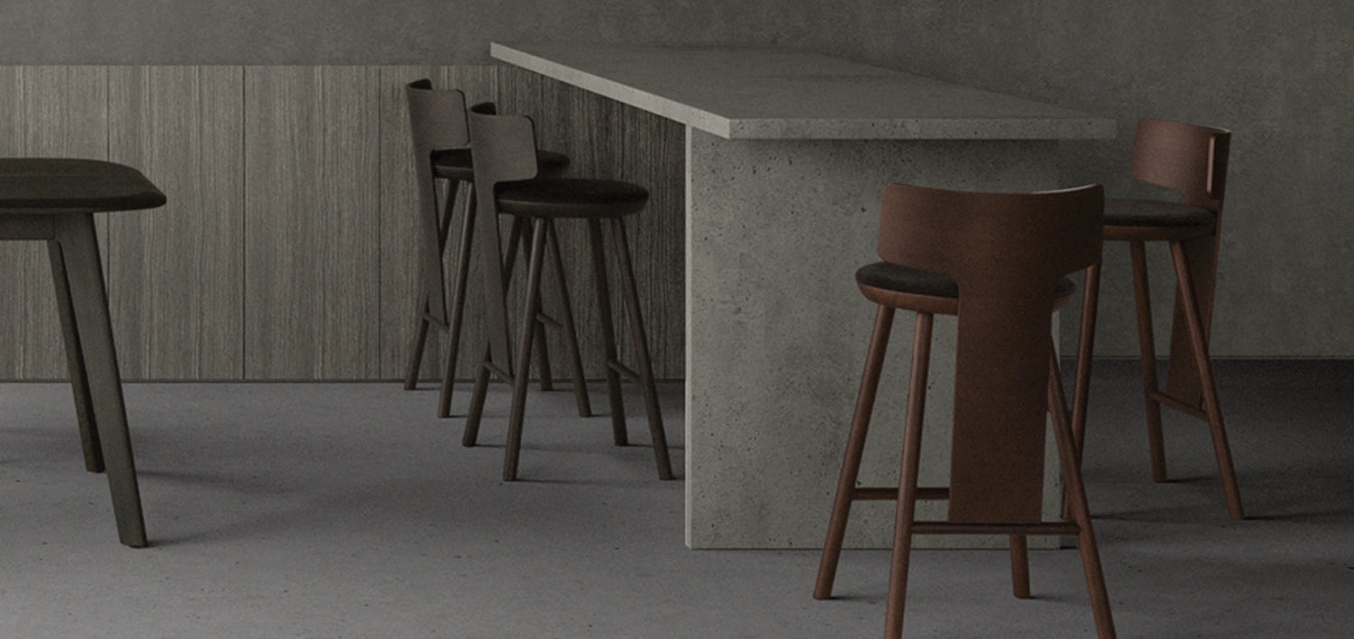 These uniquely designed tall chairs add a distinctive touch to any counter. The backrest, shaped to evoke the image of a whale’s tail fin (pinna), comes in wood or upholstery. Unlike many tall chairs, PINNA brings comfort to hours of sitting with the gentle upholstery of its seat.