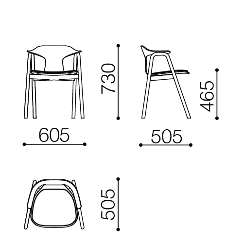 W 605 x D 505 x H 730 / SH 455 AH 675 mm