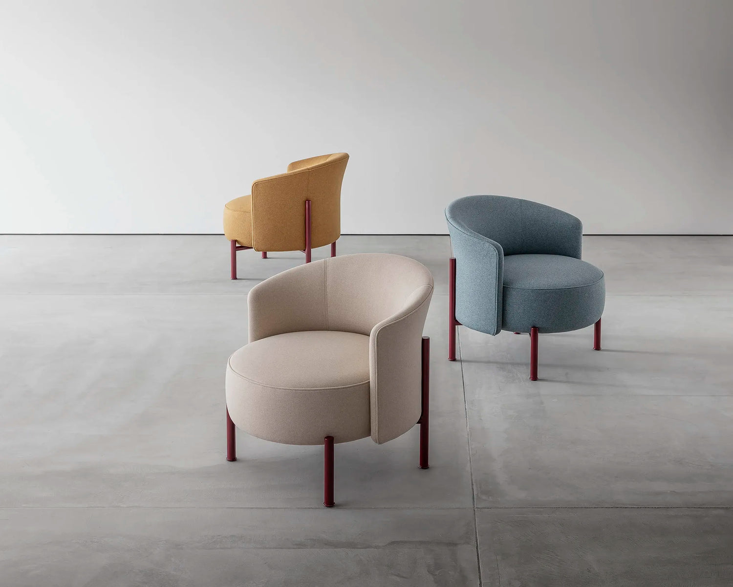 VENDOME LOUNGE is a bold yet refined lounge chair inspired by the iconic Place Vendôme in Paris. Featuring glossy steel legs, a cylindrical backrest, and a circular seat, it offers versatile seating that blends strength with comfort. The 7-layer urethane structure incorporates partially bio-based materials, while four leg color options ensure seamless adaptability to any interior.