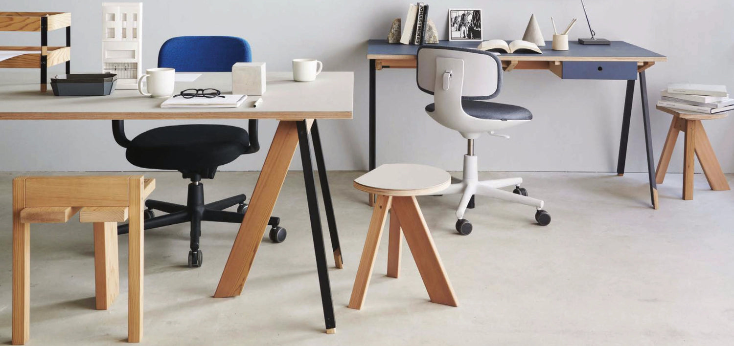 The KOBO ST-DESK and TABLE series is a multi-purpose desk or dining table and ideal for work or studying. The laminated plywood desktop is finished with linoleum made from all-natural ingredients, creating a soft texture that is pleasant to touch. The desk is supported by L-shaped steel legs that are both slender and sturdy. The sleek look of the desk is synonymous with contemporary living, drawing out the innate creativity of its users.