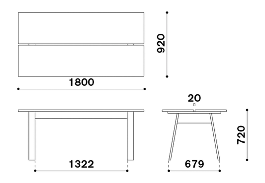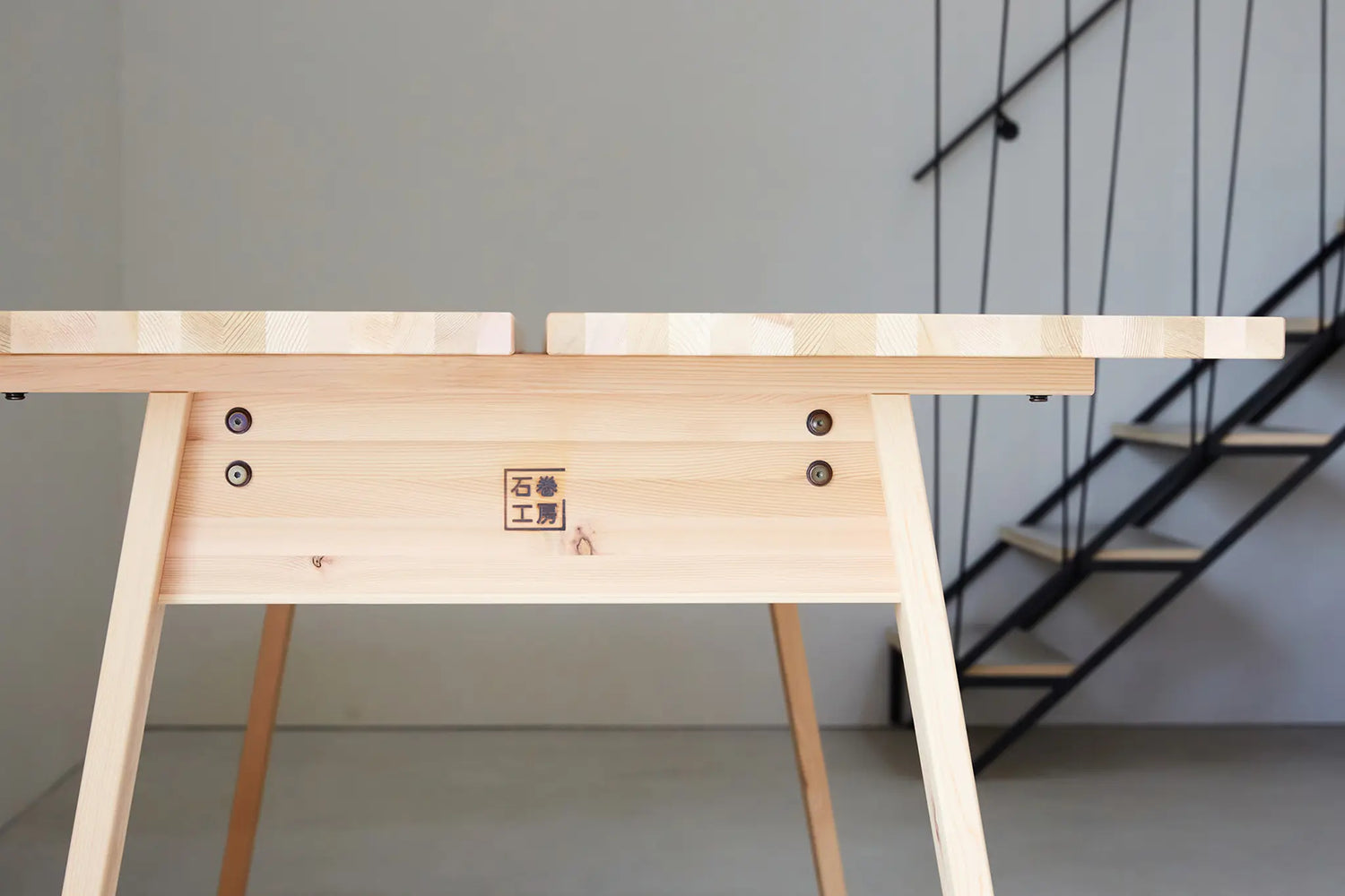 The OS series design pays tribute to the simple stools often found in Onsen (Japanese hot springs). The typology uses a traditional and robust "A" structure as a common element, then declined as a stool and table. The sturdy, oversized central beam of the A structure makes the design of the OS series both familiar and iconic. OS TABLE is the first in the OS series. The designer's idea for this table is made possible thanks to the use of 25mm thick laminated wood - a newly introduced material to Ishinomaki Laboratory. The groove in the centre serves as a passage for power cords for practical use as a work table.