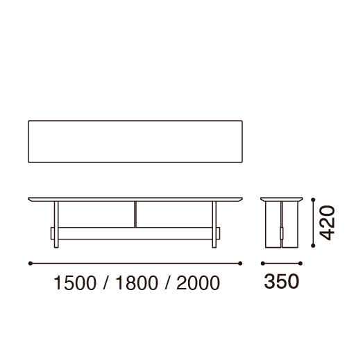 W 1500/1800/2000 x D 350 x 420 mm