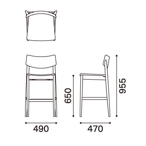 W 490 x D 470 x H 955 / SH 650 mm