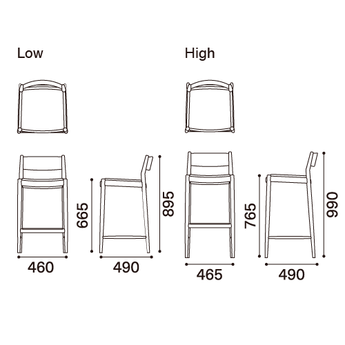 Low - W 460 x D 490 x H 895 / Wooden SH 650