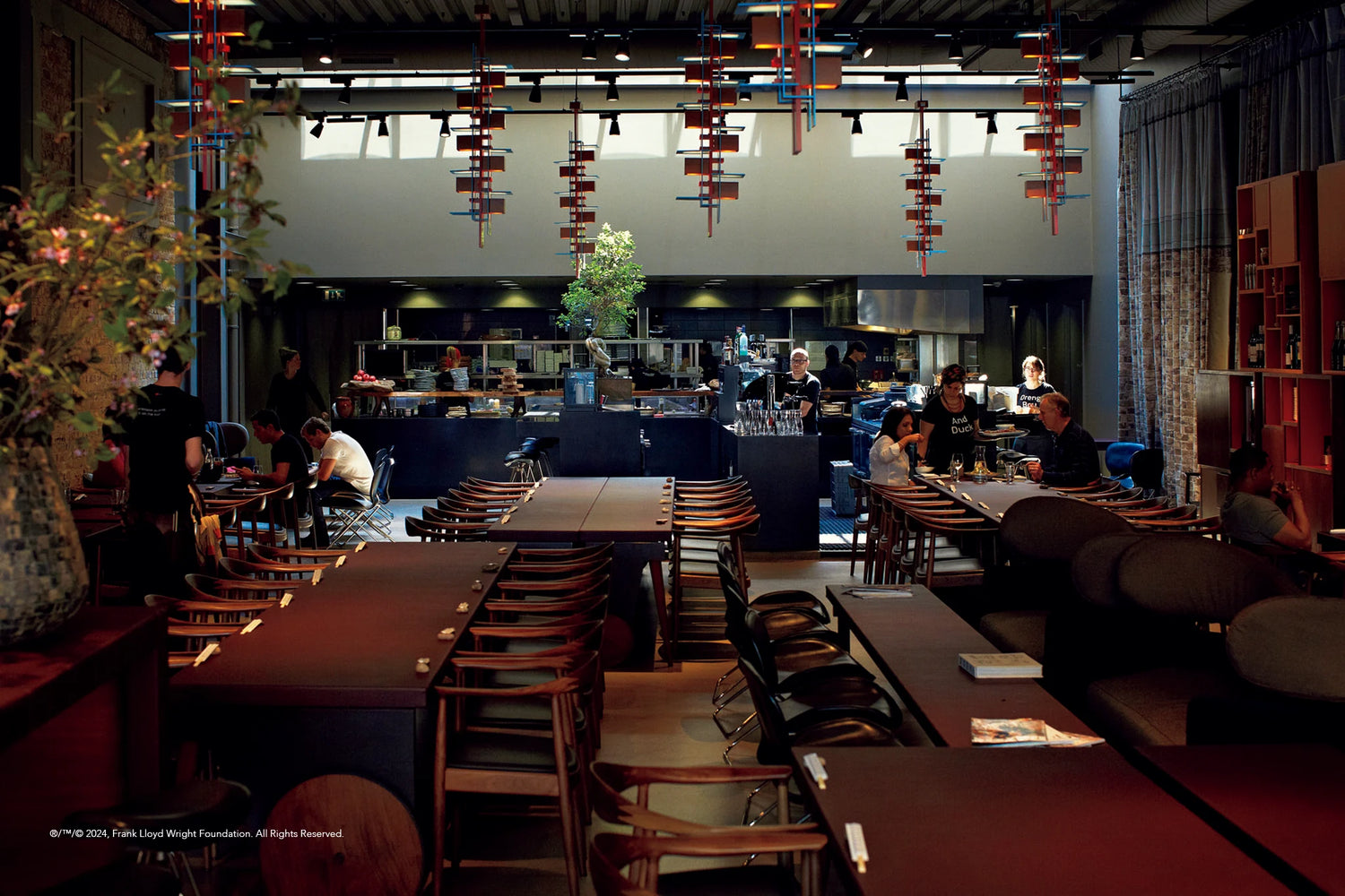 Frank Lloyd Wright (1867-1959) is one of the most legendary figures in American architecture of the twentieth century. He was recognized in 1991 by the American Institute of Architects as “the greatest American architect of all time.” He designed more than 1,000 structures in his 70-year career. As his masterpieces, Fallingwater and Guggenheim Museum have been designated a UNESCO World Heritage Site. As he is known for coining the term “organic architecture”, he established his architectural style, believing that architecture should be at home in nature. He sets importance on the harmonious relationship between the occupant, structure, and landscape. Prairie houses in the early 20th century and the Usonian houses after the 1930s are remarkable examples of which are emphasized by horizontal lines. He preferred open spaces with no partitions or doors and tended to make the ceiling lower to make people feel comfortable. Inspired by nature and what it should be like, he designed buildings including furniture and lighting fixtures which are harmonized with surroundings and occupants.