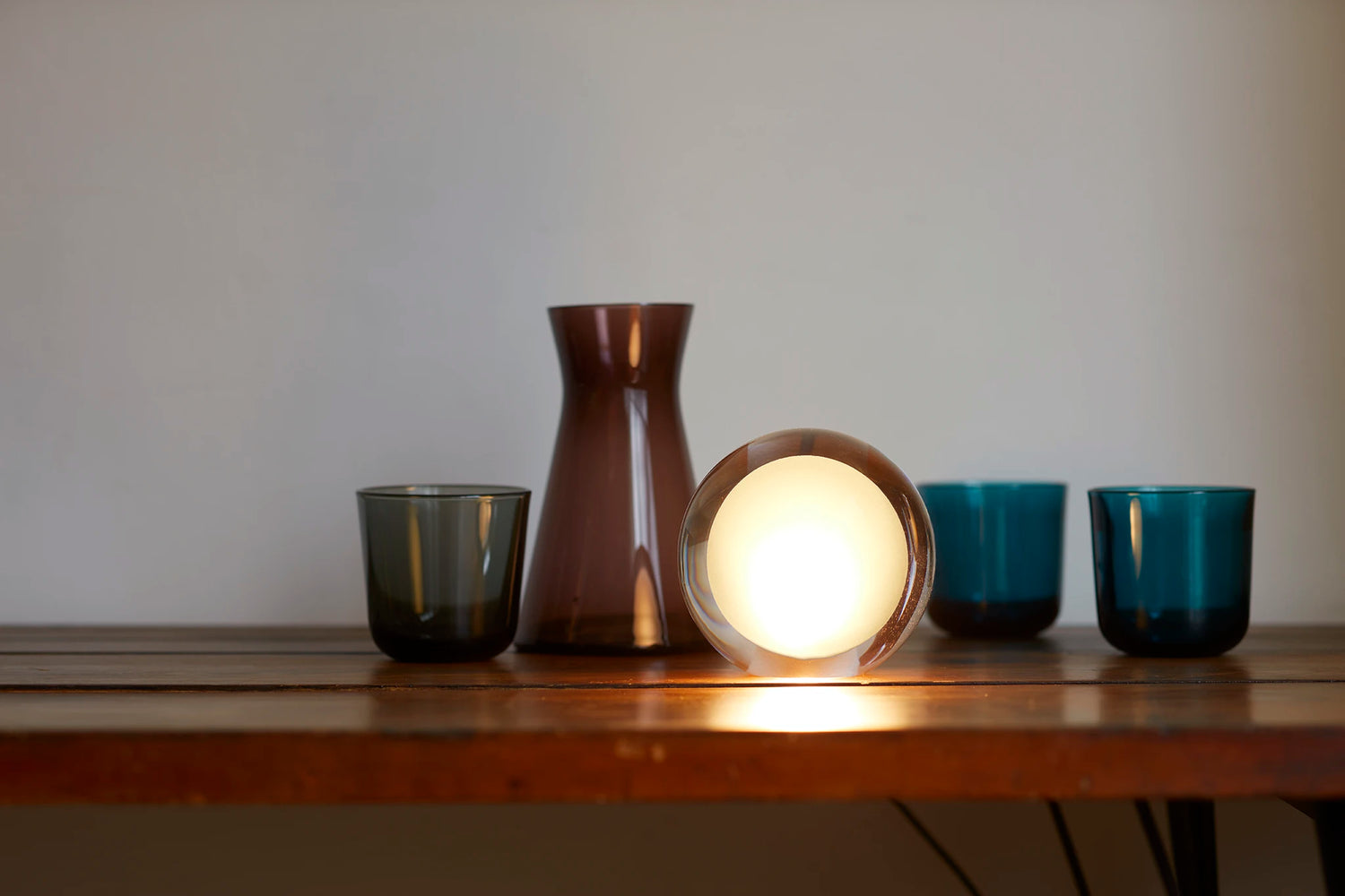An orb of light floats within the transparent hard glass globe of the teardrop. Scaled to the size of a human heart, it is not a lighting fixture, but a design of light, itself. With this sophisticated design, one of the most notable points of its specification is the hard glass that is beautifully shaped like a pearl which is handmade by Japanese craftsmen.