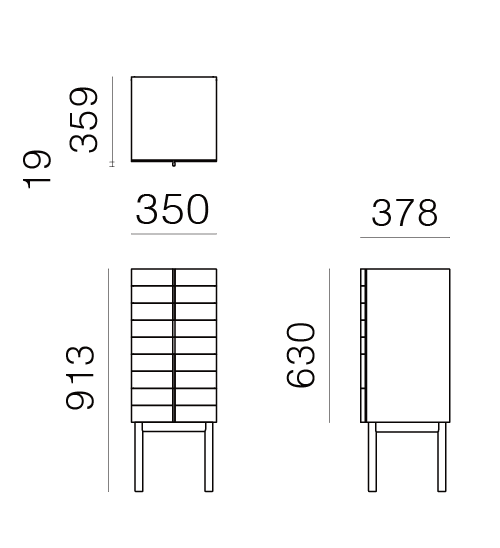 The defining character of this chest is the handle of the drawer, which is attached via a dovetail joint. The handles align vertically when all drawers are closed and form a single vertical column. The smaller drawers are perfect for storing jewellery, watches or other precious belongings, while the drawers at the bottom are meant for larger items. The chest is lifted substantially off the ground for comfortable use.
