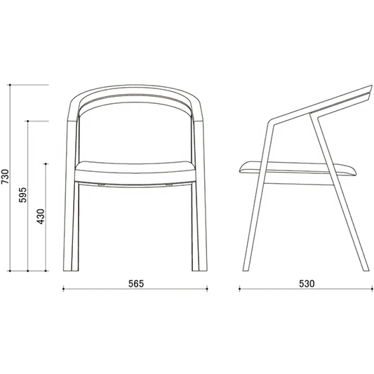 The chair looks voluminous from the front, but from the side, it has a slender, delicate form that does not give the impression of being heavy. Thanks to the angled backrest, great comfort can be enjoyed, cut at an angle to increase the cross-sectional area so that it does not feel stiff when you lean against it. The arms and front legs are joined with finger joints to create strength. The angled joints have a significantly rounded edge to avoid feeling angled when the arms are placed on them.