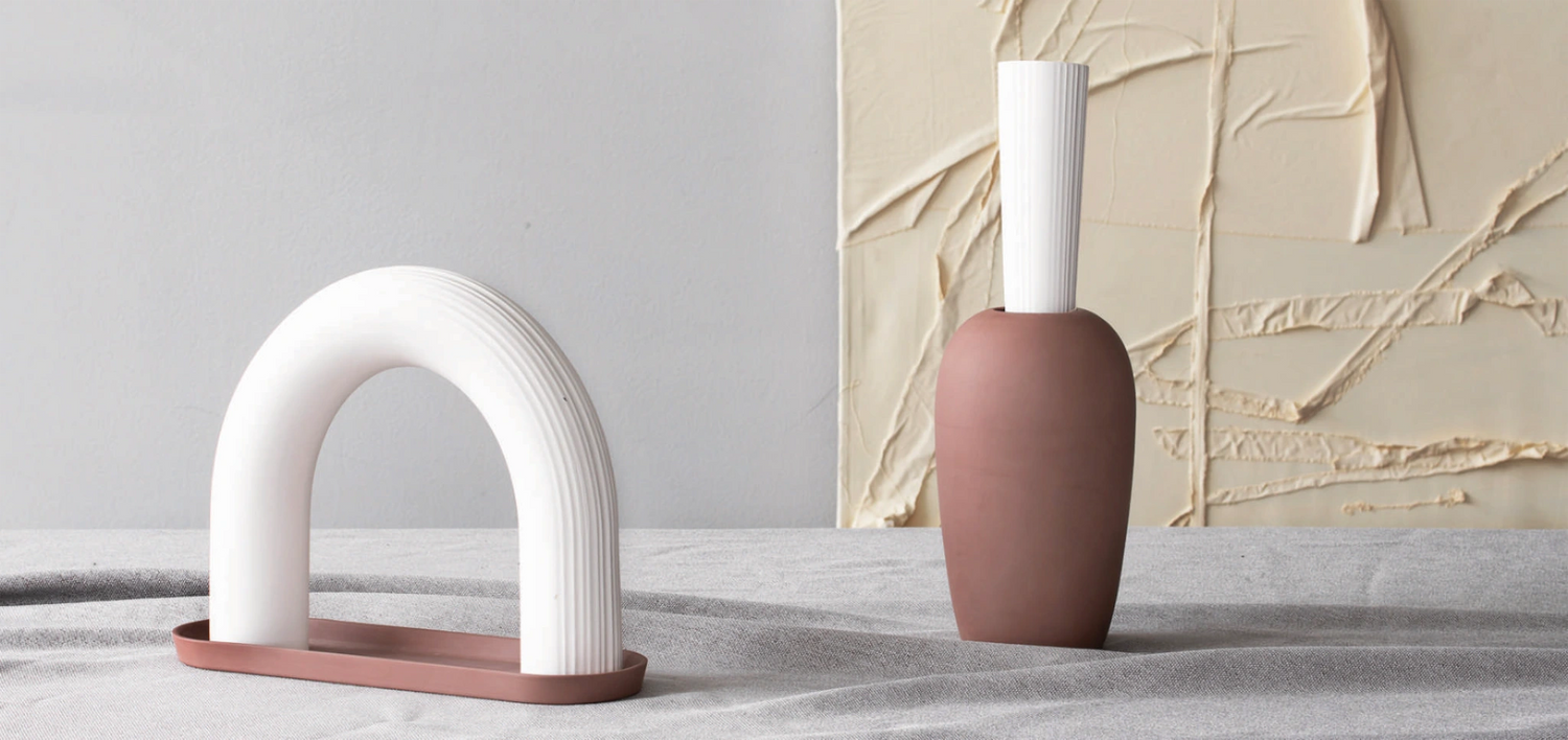 Scent is an ancient art and smell is a universal language. Krukke is a Norwegian word for a vessel in between a jar and a vase. It holds something precious like honey, homemade food or cosmetics. The Arch is a monumental symbol of strength, stability and openness. Inspired by two fragrance rituals – dripping and pouring, the two fragrance sculptures are different in their way of diffusing. The Arch is instant with the drip of oils while the Krukke sets over time, diffusing like a vase with flowers into the room.