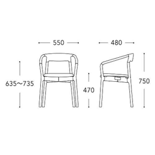 W 550 x D 480 x H 750 / AH 635-735 SH 470 mm