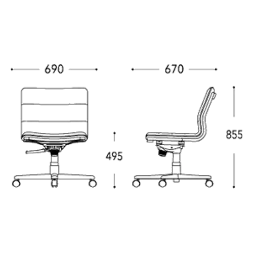 W 690 x D 670 x H 765-855 / SH Adjustable 405-495 mm