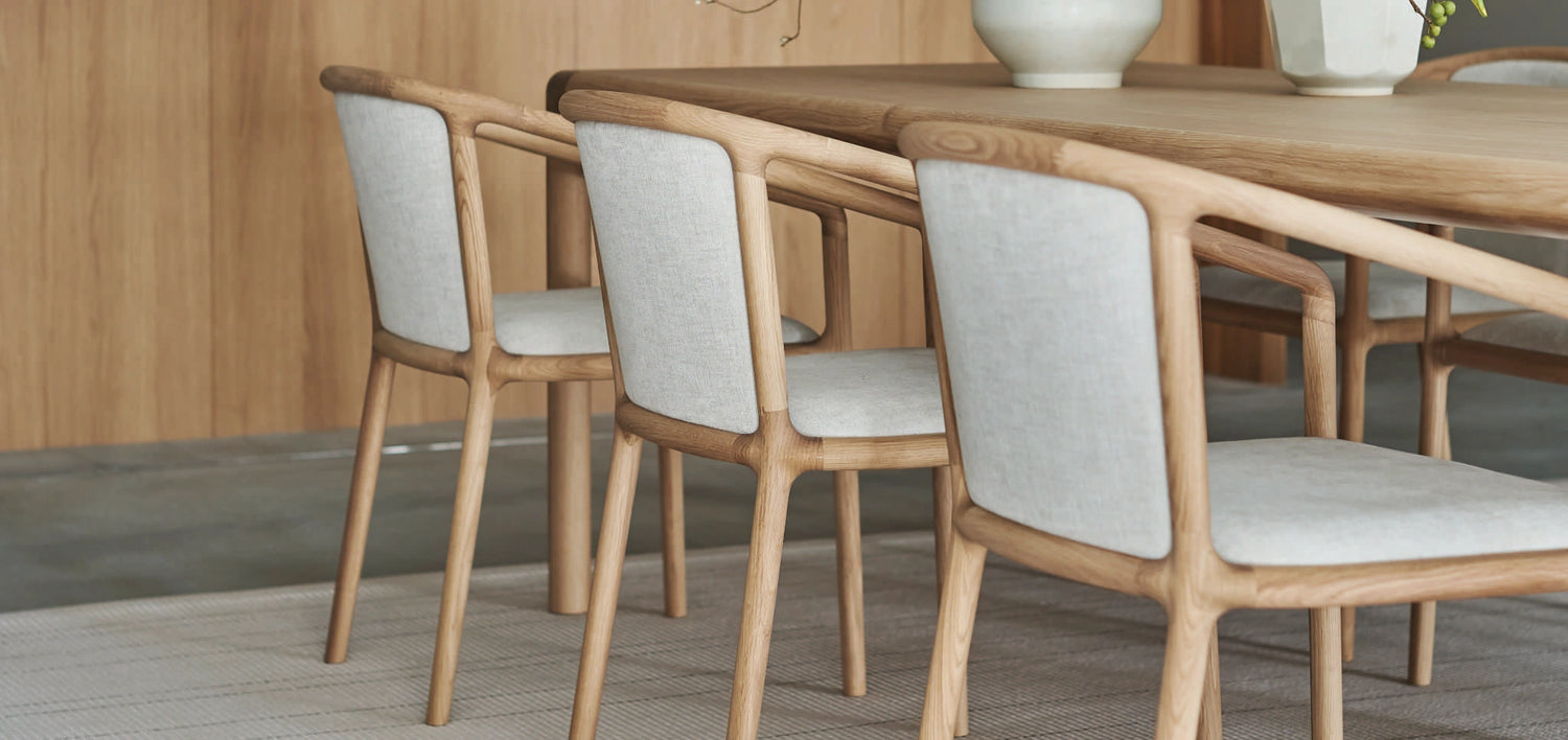The NF-DC01 dining chair was designed through a continuous exploration of form and ergonomics, in search for a balance between the two. The distinctive frame and organic transitions give the dining chair a refined complexity.