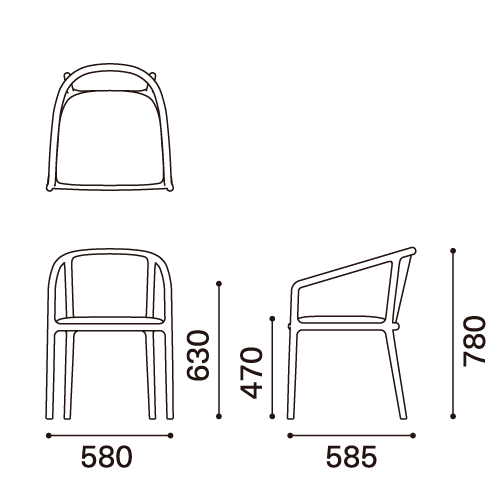 W 580 x D 585 x H 78 / SH 470 AH 630