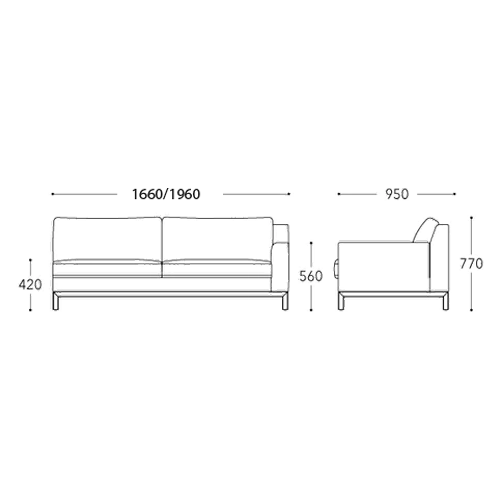 W 1660/1960 x D 950 x H 770 / AH 560 SH 420 mm