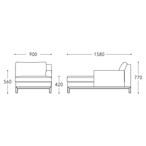 W 900 x D 1580 x H 770 / AH 560 SH 420 mm