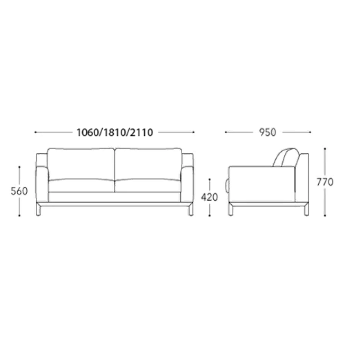 W 1060/1810/2110 x D 950 x H 770 / AH 560 SH 420 mm