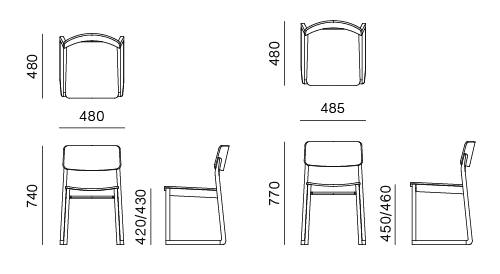 W 480/485 x D 480 x H 740/770 / SH 420/450 mm