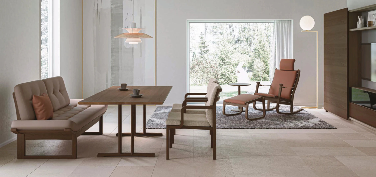This chair was praised as the first in Hokkaido to be described as 'no formal disorder' at the Asahikawa International Furniture Design Competition 1993. True to its name, it was designed with the image of a sled, allowing for agile movement in the living space. Together with a stool that serves as a footrest, enjoy moments of relaxation. This rocking chair is perfect for leaning back and relaxing. Whether it's reading, watching movies, or taking a nap in the living room, it provides a comfortable experience. Its high interior appeal is also a notable feature.