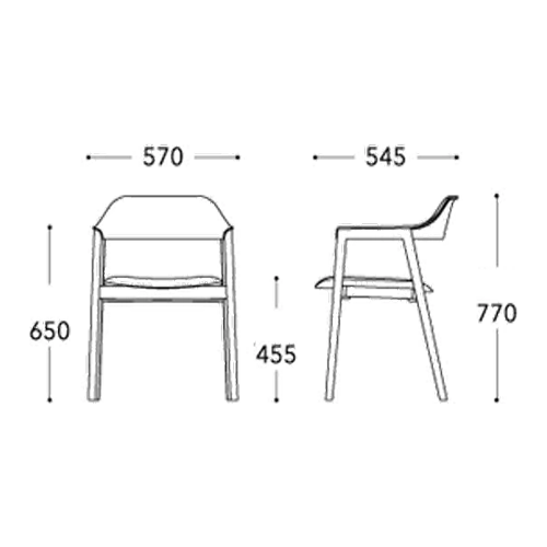 W 570 x D 545 x H 770 / SH 455 AH 650 mm
