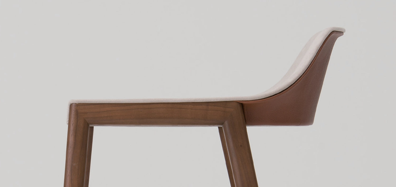 The basic versions for contract and residential purposes can be upgraded by a wide range of combinations of wood colors and upholstery materials.