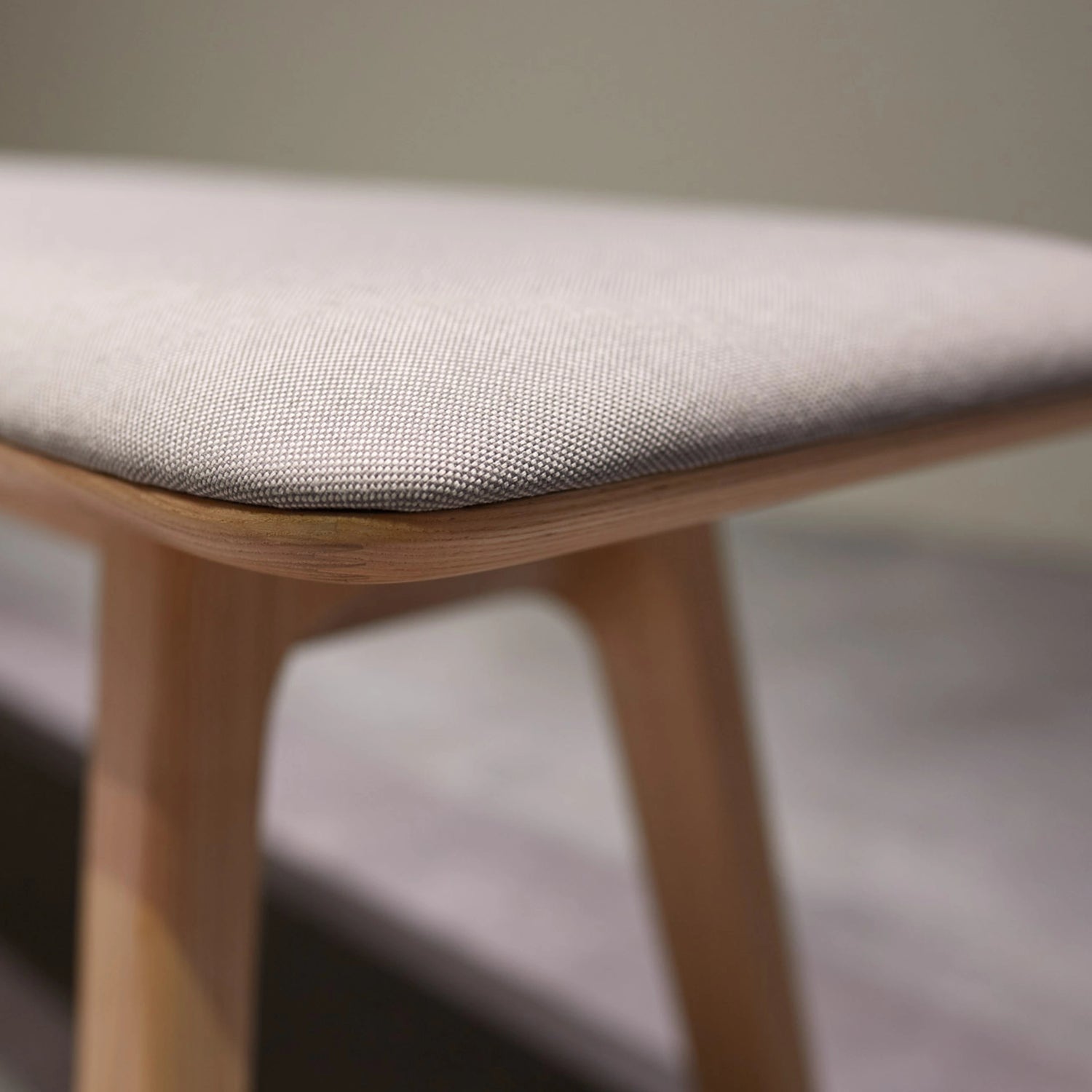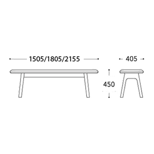 The Flat Bench from the "Ten" series embodies the ideal balance of "sharp and soft" expression. Its distinctive feature lies in the legs, which share a common motif with the table from the same series. Despite its compact depth, the seat provides ample comfort. It creates a simple and tidy space. Contrary to the compact depth of the seat, the legs are carved from solid wood, exuding a strong presence. One of its notable features is the reassuring seating comfort provided by its moderate weight. The Flat Bench, with no backrest, allows for a clean and open space. Its versatility allows seating from either side and the ability to adjust seating capacity freely. It pairs well with dining tables, especially those with T-shaped legs positioned inward.