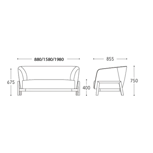 W 880/1580/1980 x D 855 x H 750 / SH 400 AH 675 mm