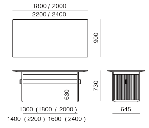 W 1800/2000/2200/2400 x D 900 x H 730 mm