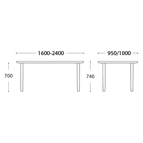W 1600/1800/2100 x D 950 x H 740 mm
