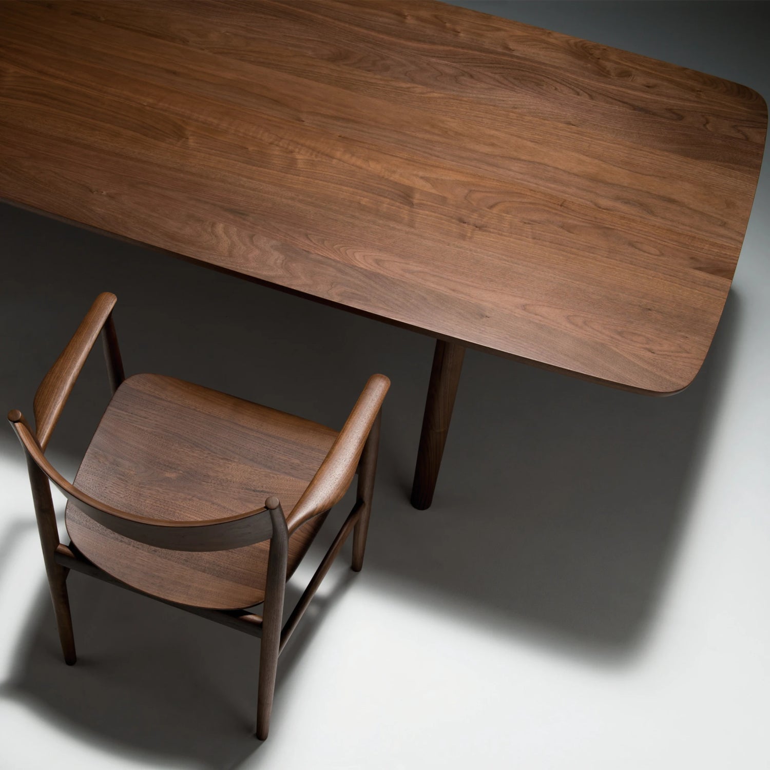 “The Kamuy dining table fits not only into a home environment, but also commercial or hospitality spaces. The soft, rounded rectangular table top is shaped by the delicately connected curves and looks svelte when viewed from different angles. For tables above 2100mm, the placement (width) of the beautifully formed legs can be adjusted to suit different needs.