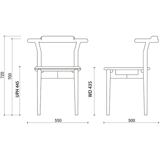 W 550 x D 500 x H 720 / AH 700 Wooden Seat SH 435 Upholstered SH 445 mm