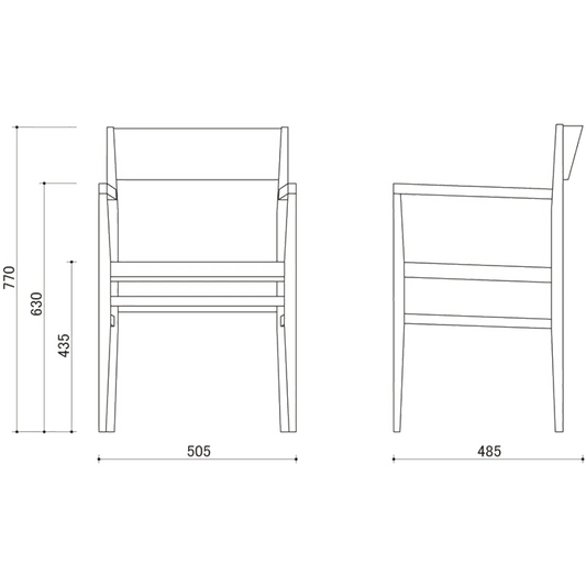 W 505 x D 485 x H 770 / SH 435 AH 630 mm