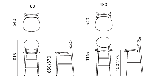 W 480 x D 540 x H 1015-1115 / SH 650-750 mm