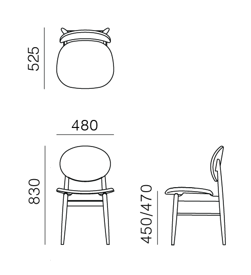 W 480 x D 525 x H 830 / SH 450/470 mm
